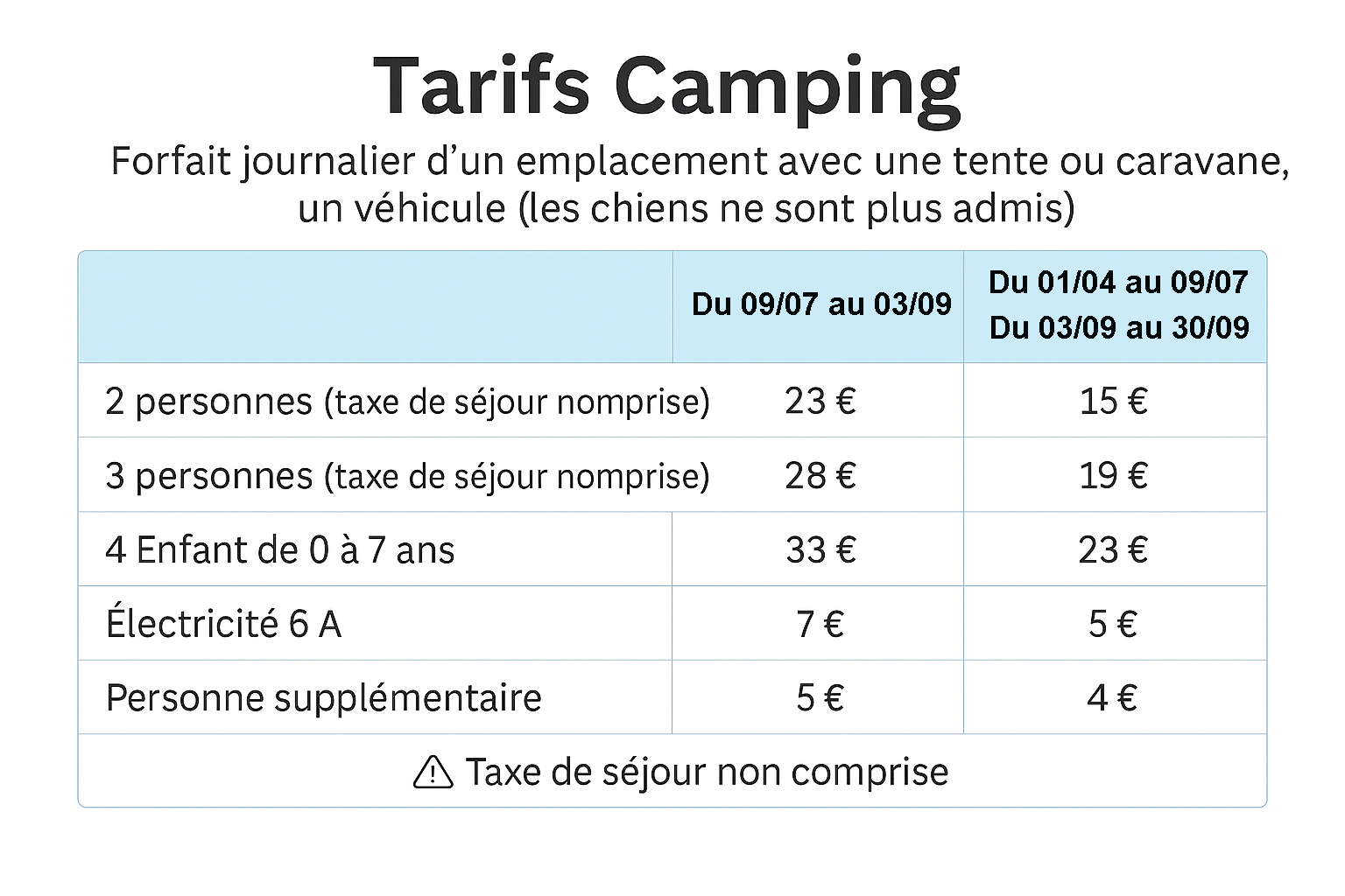 🍹 Bar – 🍽️ Restaurant – 🧒 Aire de jeux – 🎯 Terrain de pétanque